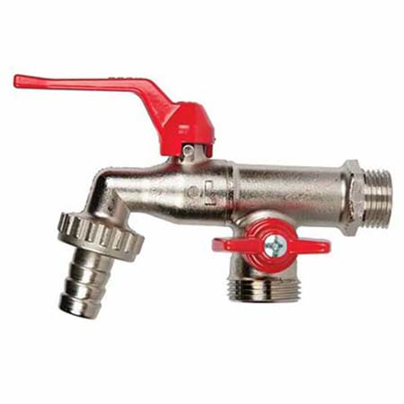 💧 Dve izlazne grane za istovremeno korišćenje vode 🔧 Standardni priključak 1/2" (DN15) 🌿 Idealna za dva baštenska creva ili crevo i ispust 🛡️ NICKEL-FREE sistem bez nikla u kontaktu sa vodom ⚙️ Čelična poluga za lako i precizno rukovanje