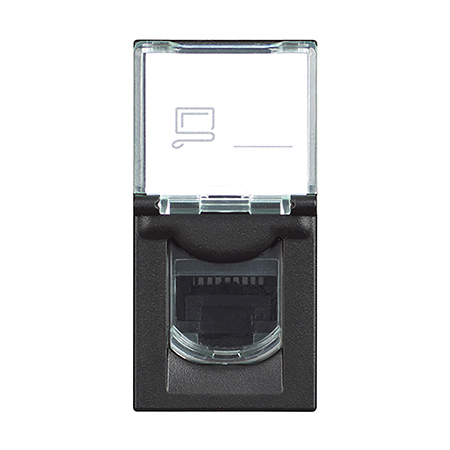 Bticino Classia računarska utičnica RJ45 UTP Cat 5e 1M crna RG4279C5E 🌐 RJ45 mrežna utičnica (PC/TV/štampač/switch) 🧩 1 modul (1M), 1 port RJ45 8(8) 🚀 Cat 5e – do 1 Gbit/s (stabilna žičana veza) 🧰 Brzo spajanje preko IDC konektora (insulation displacement) 🎯 TIA 568A/B oznake + kolor-kodiranje za lako ožičenje 🏷️ Prostor za etiketu + poklopac protiv prašine (dust cover) 🛡️ UTP (neoklopljena), IP20 – za unutrašnju upotrebu 🏠 Ugradna montaža + snap kačenje (engage) ⚫ Crna mat završna obrada (RAL 9011) 📏 22.3 × 45 mm, dubina 34 mm (ugradna 24 mm)