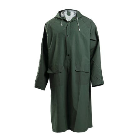 🧥 Kabanica od PVC-a i poliestera 🌧️ Potpuno vodootporna sa zaptivenim šavovima 🌬️ Ventilacija pod pazuhom i na leđima 🧢 Fiksna kapuljača sa učkama 📏 Dužina: 120 cm 💚 Boja: zelena 📐 Veličina: XL 🏗️ Pogodna za građevinu, industriju i poljoprivredu