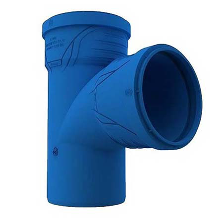 Niskošumna S LINE kanalizaciona T račva Ø 110/110 -Gustina 9 gr/cm3, prema ISO 1183 -Čvrstoća na zatezanje 28 MPa, prema ISO 527 -Modul istezanja 1300 Mpa, prema ISO 527 -Udarna čvrstoća prema Šarpiju 70 kJ/m², Prema ISO 179